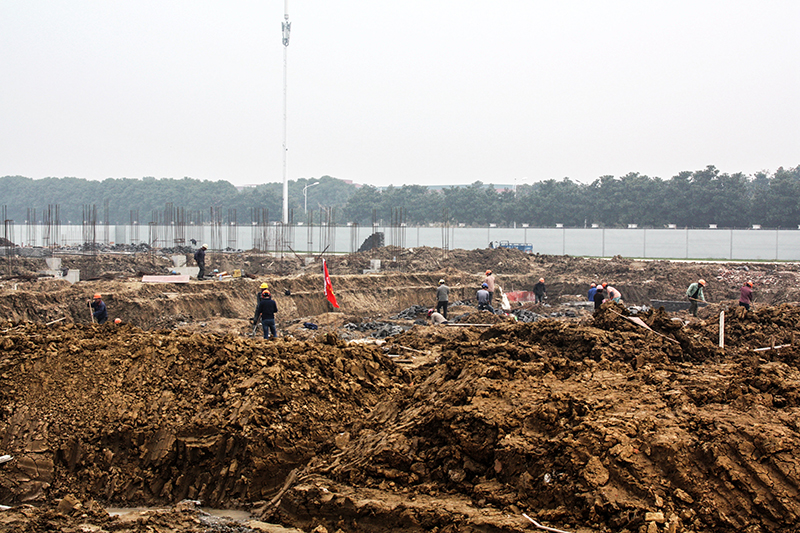 艱辛的跋涉。踉蹌的步伐,落滿(mǎn)積雪的肩頭……2018年初的一場(chǎng)大雪至今令校區(qū)管委會(huì)老師記憶深刻。校區(qū)管委會(huì)和基建處老師冒著大雪,雷打不動(dòng)深入各施工項(xiàng)目處查驗(yàn)進(jìn)展情況,深一腳、淺一腳的串串腳印記錄下了建設(shè)者們堅(jiān)定、有力的足印。梅雨季節(jié)的建設(shè)工地道路泥濘,行路艱難,即便穿了高幫雨鞋,身上還是會(huì)被濺得一身泥水。工地也有一定的危險(xiǎn),因?yàn)闃怯顑?nèi)外管道還沒(méi)有完全接通,因雨水倒灌進(jìn)行的電力搶修都是在大風(fēng)大雨中進(jìn)行,然而工作人員都義無(wú)反顧地奮戰(zhàn)在工作崗位上。大家同甘共苦,團(tuán)結(jié)一心,流汗、流血、但不流淚。