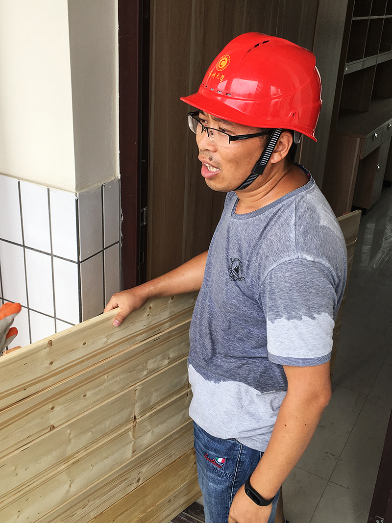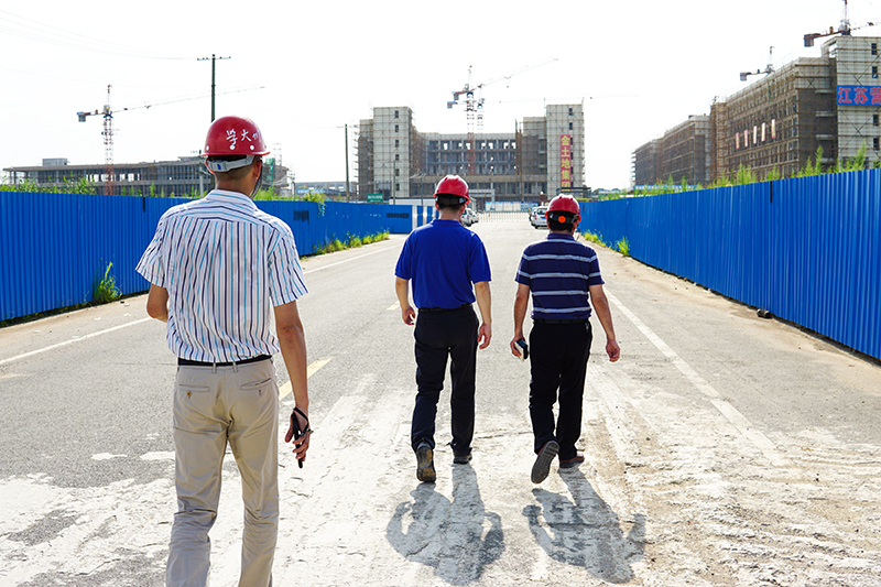 西太湖校區(qū)有兩個(gè)特別的職能部門(mén)——他們辦公室的墻上常年掛著的校區(qū)總平圖和一沓工程項(xiàng)目跟進(jìn)表總是那么引人注目。鐵皮柜上的安全帽擺放得整整齊齊,擺放在門(mén)口的雨靴和防釘鞋上還殘留著沒(méi)有完全刷凈的塵土。兩個(gè)部門(mén)辦公室的門(mén)虛掩著——工作人員好像不在,而不遠(yuǎn)處會(huì)議室里傳來(lái)的據(jù)理力爭(zhēng)的聲音卻讓我們看到了為西太湖續(xù)建工程方案熱烈討論的兩個(gè)部門(mén)的全體工作人員。這兩個(gè)部門(mén)便是西太湖校區(qū)管委會(huì)和基建處,兩個(gè)部門(mén)工作人員各為12人,平均年齡不到37周歲。2小時(shí)后,項(xiàng)目方案研討會(huì)結(jié)束了,他們顧不上休息,而是徑直走向在建工地,工程一線(xiàn)的走訪(fǎng)和方案優(yōu)化研討幾乎成為這兩個(gè)部門(mén)每周的“必修課”。