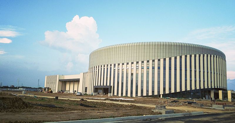 2017年11月體育館開(kāi)始外立面施工